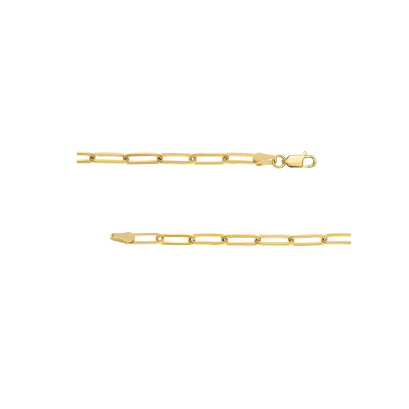 This gorgeous paperclip chain stands on its own but can also be layered with your personal collection to create a unique layered look. The 14K yellow gold chain is 3.85mm wide and measures 8" long.