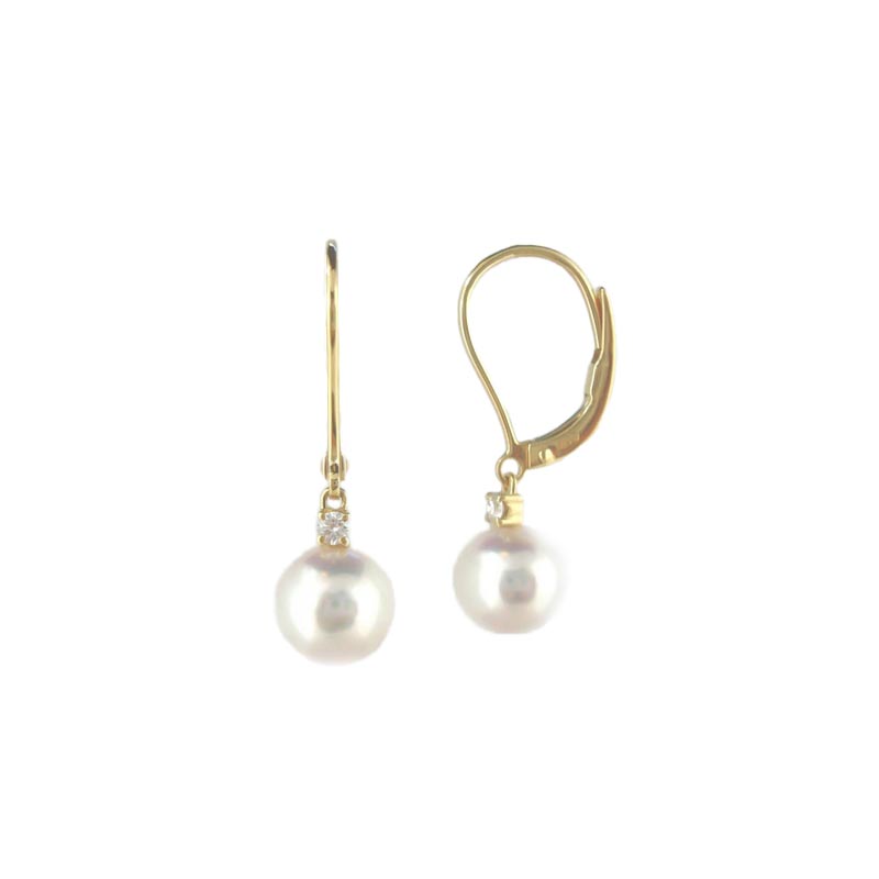 From Mikimoto's Classic collection these 18K yellow gold drop earrings feature a Akoya A+ pearl with diamonds (0.06tcw).