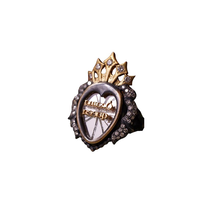 From Arunashi's ‘Mirror Mirror…’ series, this ring is constructed with a broken mirror in the background that humorously yet unapologetically tells the wearer who they are. Framed by dazzling diamonds, the words ‘Drama Queen’ is written inverse, as a mirror image, in more exquisite diamonds. In Arunashi’s dictionary, being deemed a ‘Drama Queen’ is seen as a compliment. A self-owned word, only she can call herself that in jest, as she excels in her emotion. Unafraid to show her emotions proudly and powerfully, people stand in awe of her as she leads the pack. She leads the pack and never puts anyone down to put herself up, instead standing up for people. Some may think she’s overreacting, but she knows what she’s doing, and her end goal behind it.