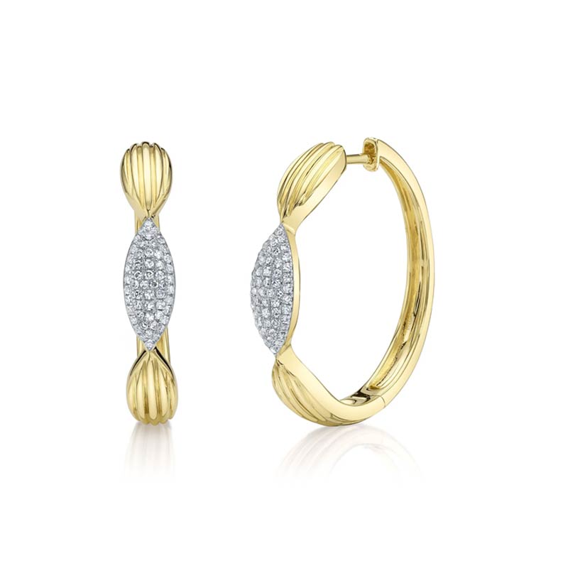 From our Bliss collection, comes the Textured Scalloped Hoops from our Bliss collection. Set in 14K yellow and white gold and totaling to 0.23 carat weight, these hoops are stylish everyday wears!