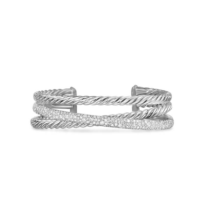 David Yurman Crossover Three Row Cuff Bracelet with Diamonds, 20mm is backordered and will ship as soon as it is back in stock.