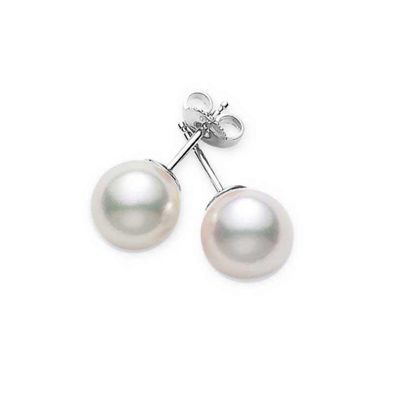 From the Everyday Essentials collection, 7.5X8mm Akoya pearl studs in 18K white gold.