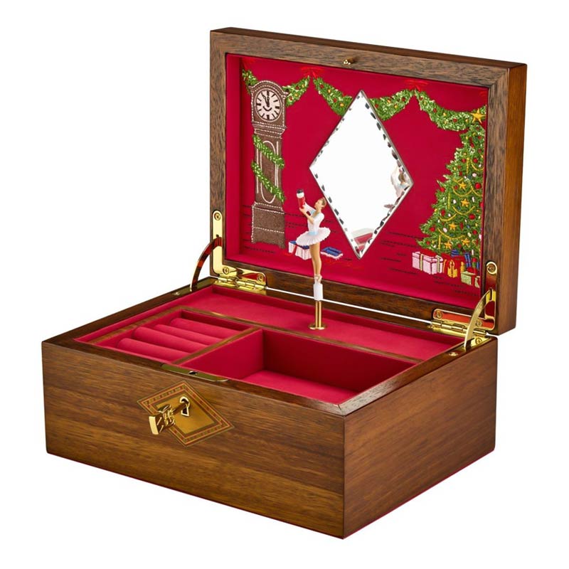 The Ballet collection’s musical jewellery boxes are a celebration of Wolf's original turning ballerina box. With walnut wood veneer and exquisite marquetry inlays, complemented by silver- or gold-finish hardware and custom designed themed keys.