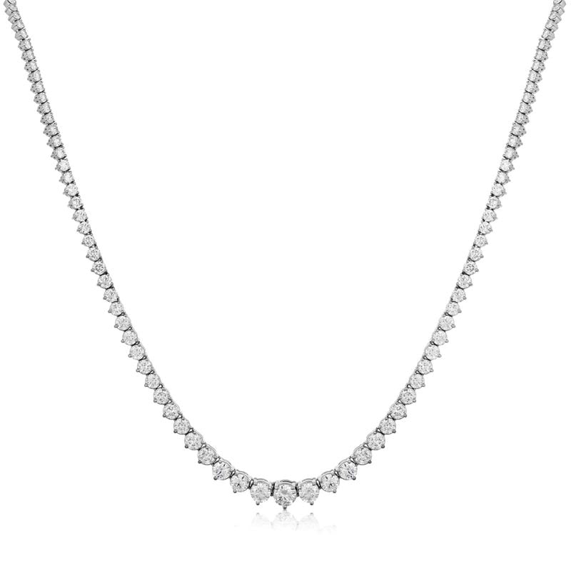 From our Prima collection, this stunning riviera diamond necklace is set in 14K white gold featuring 139 round brilliant diamond stones using a 3-prong set setting, diamonds totaling 12.01ct.