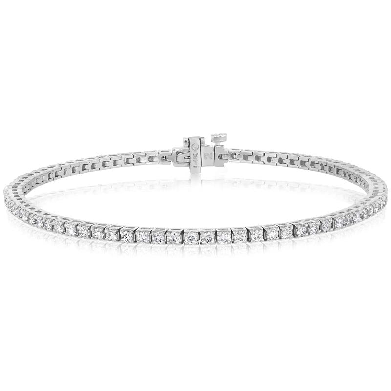 From our Prima collection, set in 14K white gold this diamond tennis bracelet features 76 brilliant round 4-prong set diamond stones.