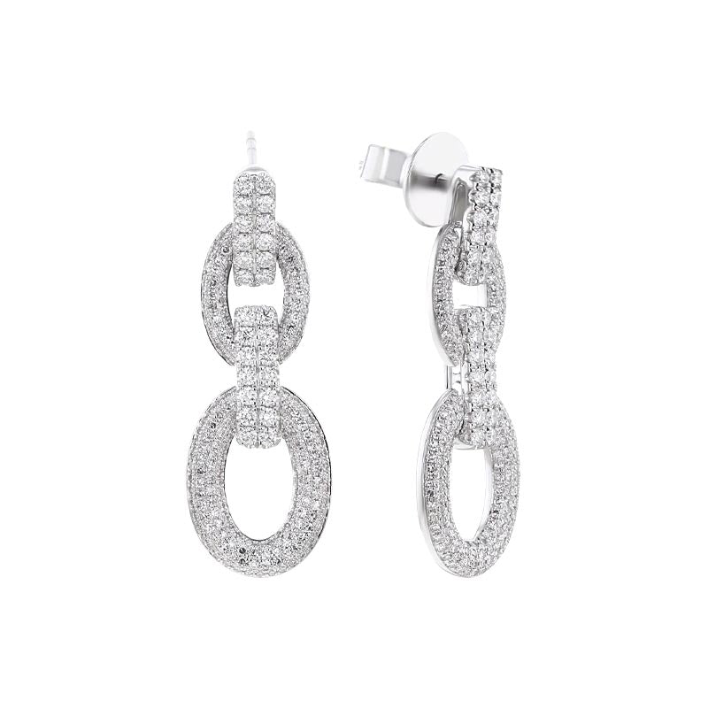 From our Prima Collection comes the newest of the link earrings, the Pave Link Drop Earrings. Oval links of 14K white gold with pave diamonds, alternating with pave bars in between, giving the everyday design an elevated look!
